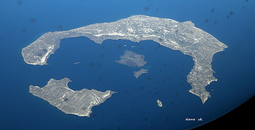 Let me give you a fourth interpretation that fits most of the evidence and may in fact meet all the evidence (but I am still skeptical). NOTE FROM 2018 - I think this AD 66 date from Sergey Soloviev has been sufficiently discredited that I need to make a note of it - most scholars believe that it was long before the time of Christ - somewhere between 1200 and 1628 BC, though there are many dates given.3 So you can disregard this paragraph. Though I did not hold to this theory, I took it too seriously by even mentioning it. pk This is labeled Theory #1 on the back of your outlines because it is the first one that perfectly fits the timetable. There was a literal mountain on fire in AD 66 that created catastrophe. This was the eruption of the volcano called Thera on the island of Santorini southeast of Greece.4 The mountain very literally did disappear into the ocean after that blast. So in one sense you could say that it was cast into the sea. In your outlines you can see a picture of where the volcanic mountain used to be on this aerial photo of the Santorini of today. All that is left is a round area filled up with sea water. That is the remains of where the hollow cone of the volcano used to be.